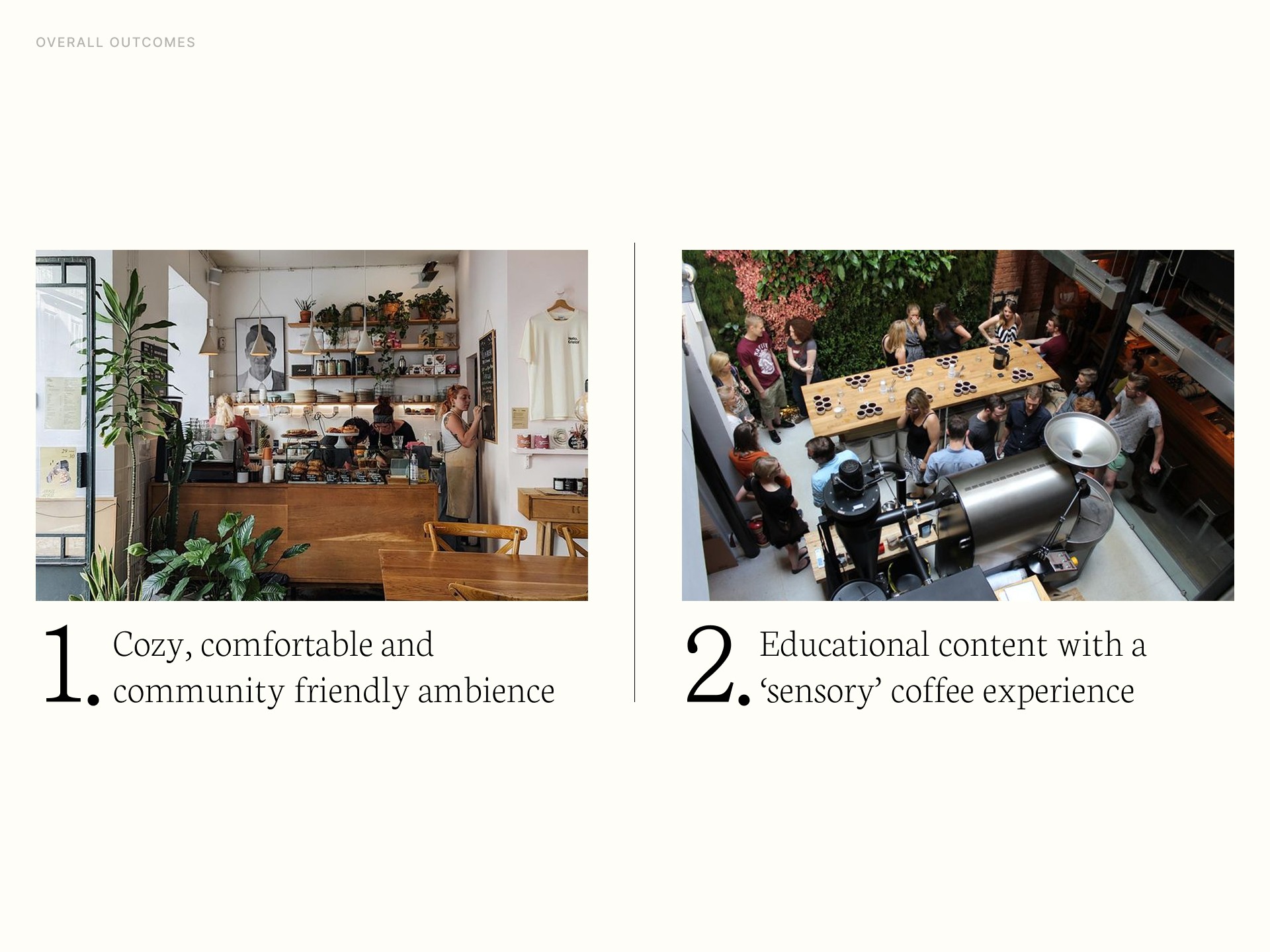 We benchmarked local competitors, revealing a saturated but soulless café scene—often minimal, monochrome, and impersonal. This informed our strategy to differentiate via warmth, community, and sensory storytelling.
